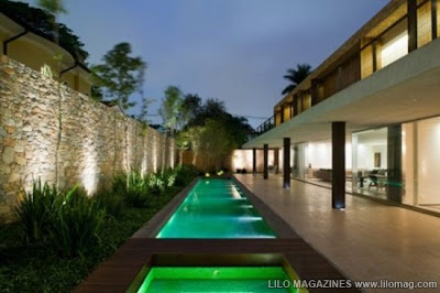 The contemporary residential house by Marcio Kogan and his team, its an urban house combines dark natural Brazilian hardwood, concrete and vernacular stonework in the open planned style that I love to see. Progressing up the house: stone, concrete framed and then totally wood clad forms are thoughtfully placed.